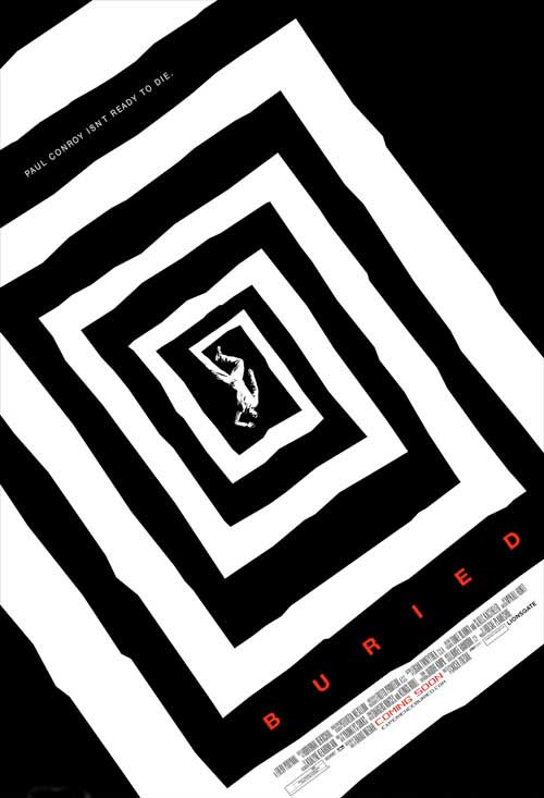 Even though it’s got some rave reviews at Sundance, a movie where most of the running time is just one guy (Ryan Reynolds) trapped underground in a coffin, deperate to escape, is a tough sell. As a result, they’re devising some very cool and intriguing marketing to get people interested in Buried, ranging from simple but smart posters and motion posters, to a claustrophobic teaser trailer. Now they’ve produced a Saul Bass inspired poster, which brings to mind his classic images for the likes of Vertigo and The Man With The Golden Arm (which you can see below, underneath the new Buried poster).