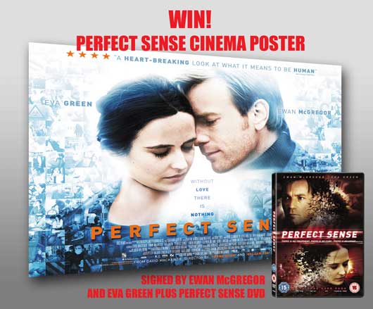 OK, it’s January and it’s all a bit dismal but at the end of this month Perfect Sense is released on DVD. If Ewan McGregor and Eva Green can manage to find love as the world is crashing down around them in Perfect Sense, then we can certainly get through January. The DVD is released on 30th January 2012 and to celebrate we’re giving away a fantastic cinema poster signed by both McGregor and Green, plus a copy of Perfect Sense on DVD.