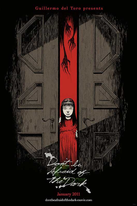 Disney may have just sold Miramax, but it looks like the new owners will have at least one movie they can release soon, as the company’s logo is attached to the Guillermo Del Toro produced Don’t Be Afraid Of The Dark, which was initially described as being creepy fun that might be suitable for the whole family, but is looking a whole lot darker and R-rated than that in this teaser. In the film Sally (Bailee Madison) is a lonely, introverted child who has just arrived at the 19th century mansion her father (Guy Pearce) and his girlfriend (Katie Holmes) are restoring. While exploring the sprawling estate, Sally discovers a hidden, long-undisturbed basement. Unwittingly, she unleashes a race of malevolent, dark-dwelling creatures who intend to drag her and her family down into the mansion’s bottomless depths. Don’t Be Afraid Of The Dark is due out early next year, but click below for the scary teaser.